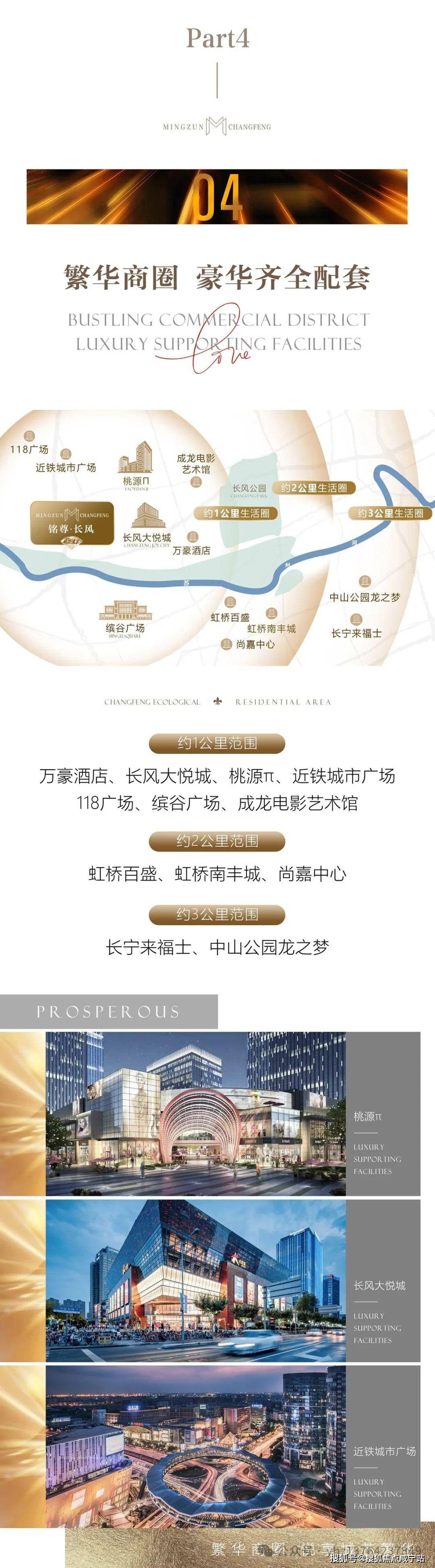 【商业】:1公里左右范围:万豪酒店,万怡酒店,近铁城市广场,118广 场,缤谷广场,成龙电影艺术馆,长风大悦城。2公里左右范围:巴黎春天百货 、3公里左右范围:长宁来福士,中山公园龙之梦