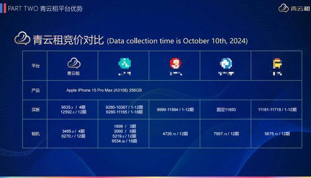 ▲宣传资料中,青云租与其他租机平台竞价对比。受访者供图