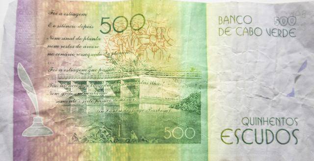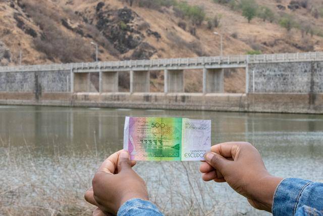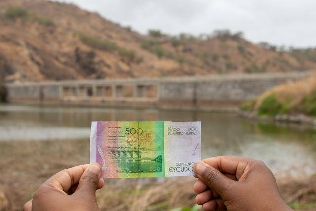这是2025年4月20日以佛得角泡衣崂水坝为背景拍摄的500佛得角埃斯库多纸币。