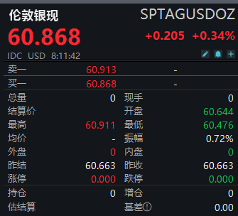 【大河财立方消息】12月9日,贵金属集体走高,截至10日早盘,伦敦银现报60.868美元/盎司,日内涨0.34%。今年以来,银价已经上涨了近110%。消息面上,周二美盘交易时段,随着交易员在美联储利率决议前夕保持乐观情绪