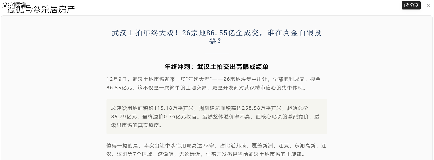 武汉土拍年终大戏!26宗地86.55亿全成交,谁在真金白银投票?