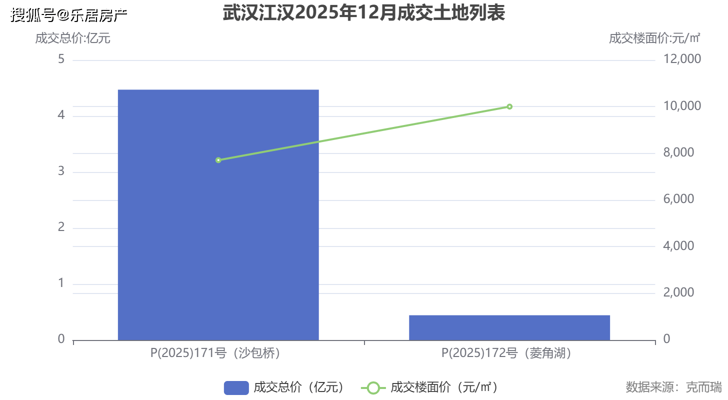 汉阳区车站街片一期地块(P(2025)176号),规划建面4.63万平方米,以3.34亿元底价成交,楼面价7216元/平方米。硚口区汉江湾地块(P(2025)173号),规划建面7.64万平方米,同样底价成交,楼面价6508元/平方米。