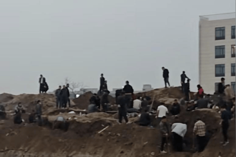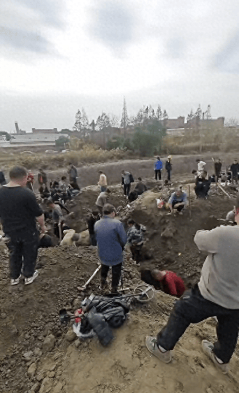 视频中显示,市民们携带铁锹、金属探测仪等工具扎堆挖掘。