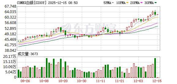 据Wind统计,截至12月14日,伦敦现货白银价格报64.65美元/盎司,年内累计上涨114%;COMEX白银期货主力合约价格报65.08美元/盎司,较年初上涨111.9%。