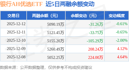 证券之星消息,12月12日,银行AH优选ETF(517900)融资买入50.44万元,融资偿还81.7万元,融资净卖出31.26万元,融资余额5090.19万元。