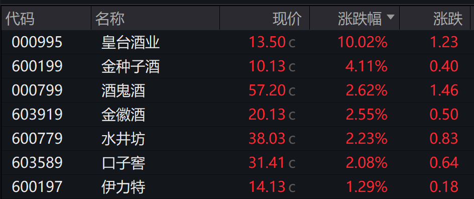 A股大消费板块集体拉升,食品、乳业、零售、白酒等纷纷走强,皇氏集团、均瑶健康、皇台酒业等多股涨停,。