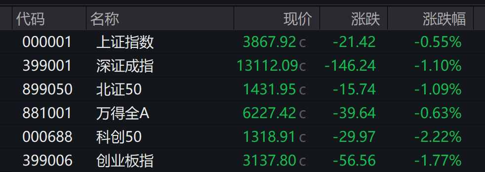 消费板块大涨A股:截至收盘,沪指跌0.55%,深成指跌1.1%,创业板跌1.77%。