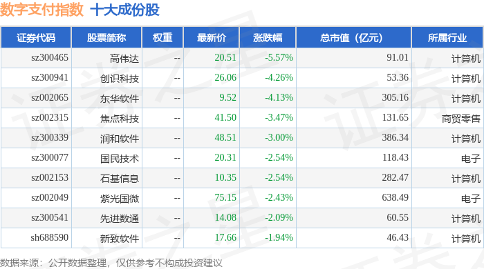 数字支付(980113)指数十大成份股详情如下: