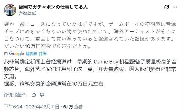有人提到,初代 Game Boy 价格暴涨,并不完全是因为情怀,而是因为——硬件本身被重新“发掘”了,重点就在它那颗 音源芯片上。