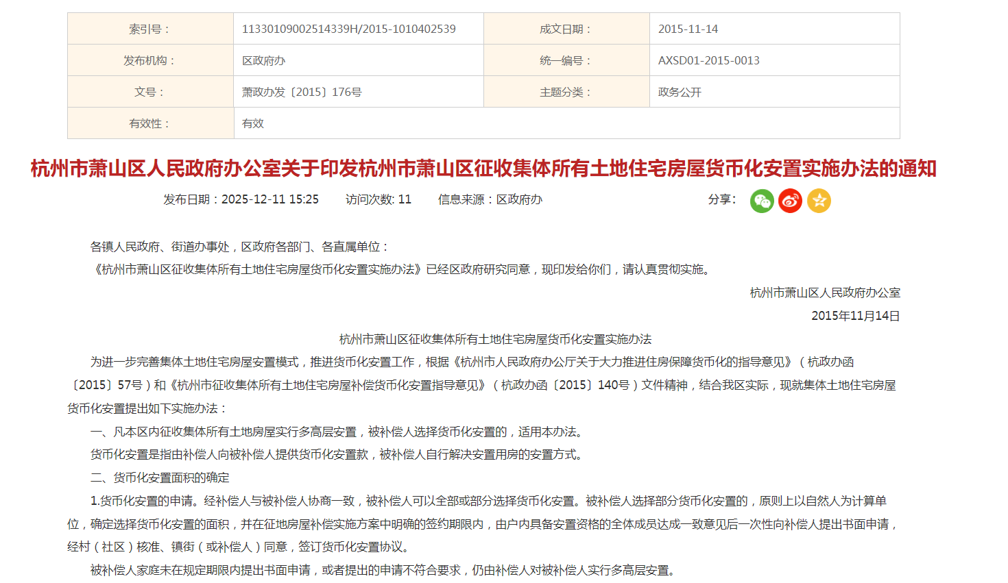近日,杭州萧山区出台了新的拆迁补偿办法,目前已开始实行。