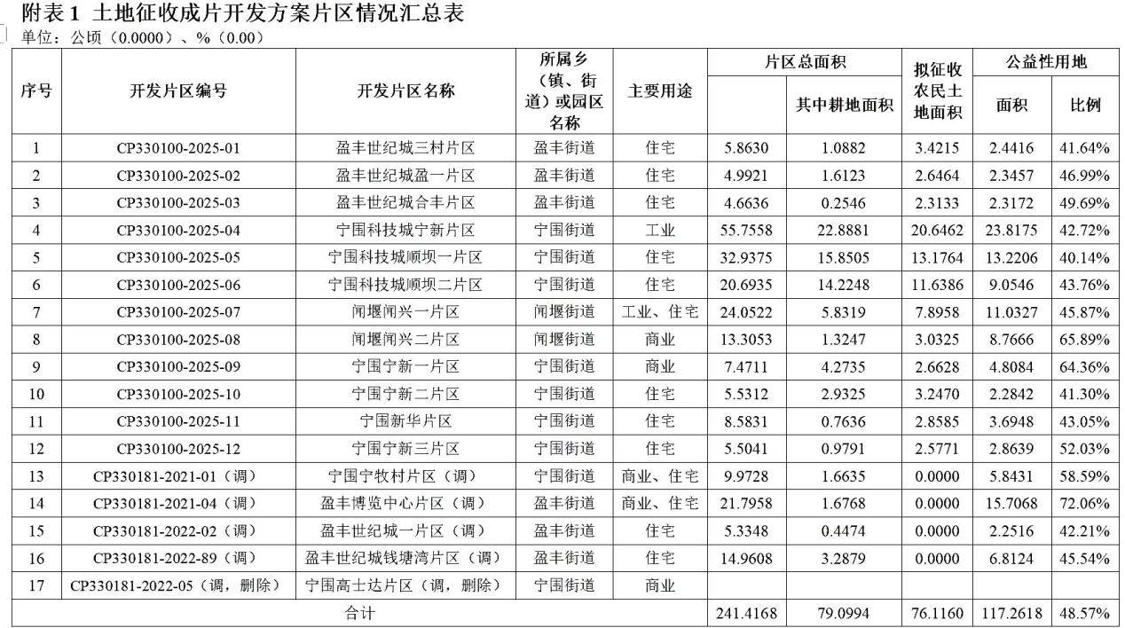 萧山区征地、拆迁十分活跃,2025年已公开5批土地征收成片开发方案(另1批取消),涉及100多个片区约1394公顷土地,其中460公顷属农民集体所有。