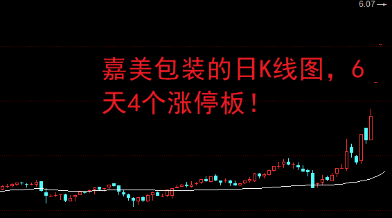 选对了个股,或者恰好选对了个股,那么现在的市场对于他们而言,就是最好的时代。盘面上,嘉美包装继续以一字涨停板的姿态呈现在股民的面前,这是它在6个交易日内取得的4个涨停板!对此,有股民感慨道:“妖股的黄金时代”!