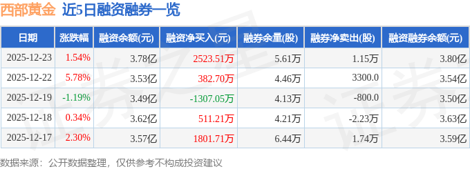 证券之星消息,截至2025年12月23日收盘,西部黄金(601069)报收于28.43元,上涨1.54%,换手率3.88%,成交量34.45万手,成交额9.81亿元。