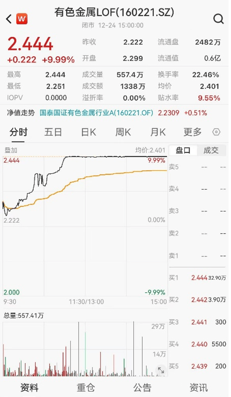 【大河财立方消息】12月25日,国投白银LOF(161226.SZ...