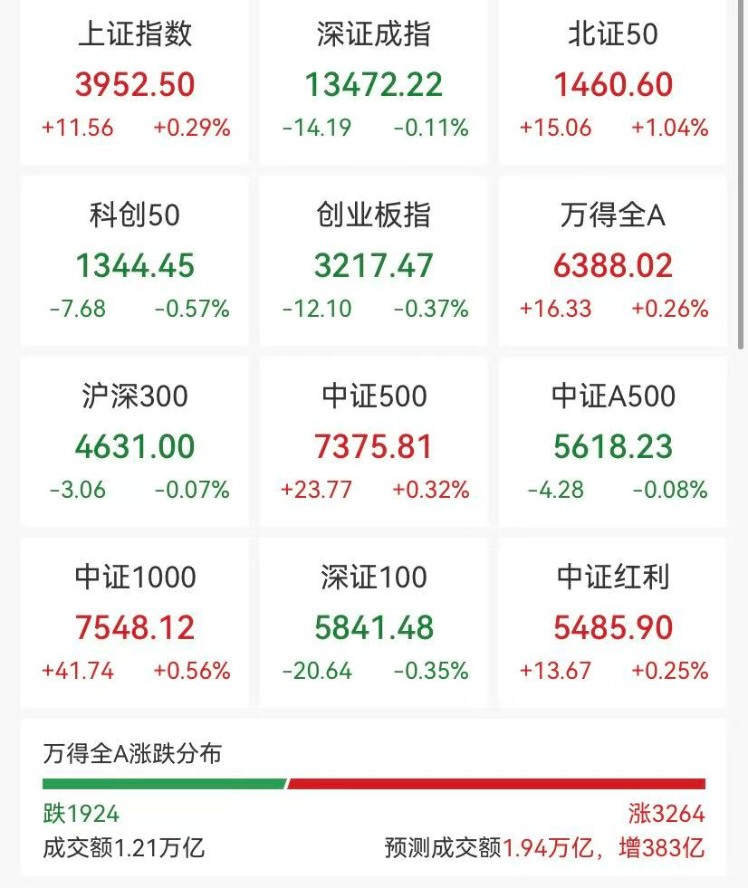 12月25日,A股三大指数开盘涨跌不一,沪指震荡拉升,创业板指冲高回落。截至午盘,沪指涨0.29%,深成指跌0.11%,创业板指跌0.37%。沪深两市半日成交额1.21万亿元,较上个交易日放量509亿元。全市场超3200只个股上涨。