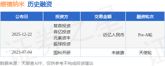 证券之星消息,根据天眼查APP于12月22日公布的信息整理,江西缙禧纳米材料有限公司Pre-A轮融资,融资额近亿人民币,参与投资的机构包括复容投资,容亿投资,元素资本,振球投资。