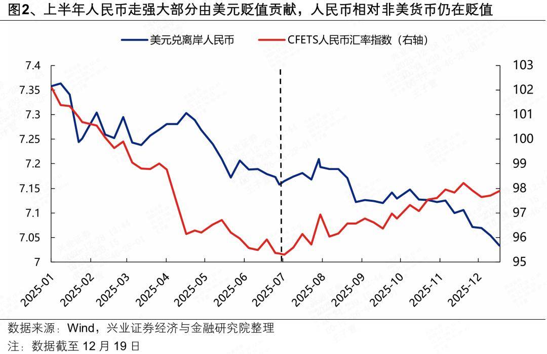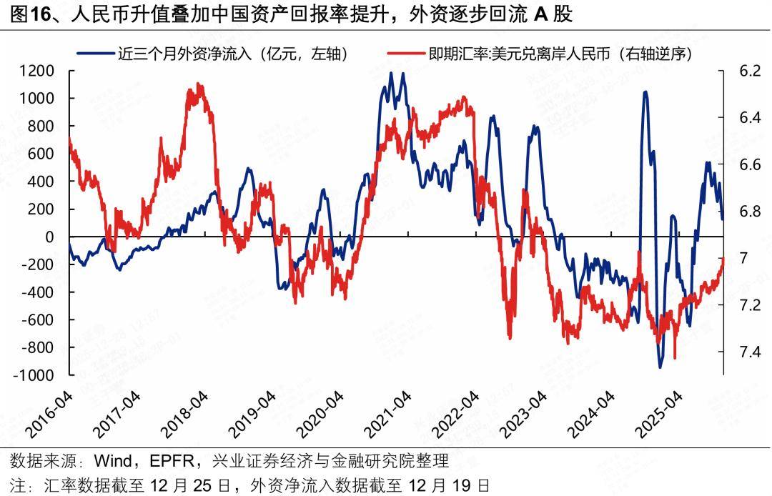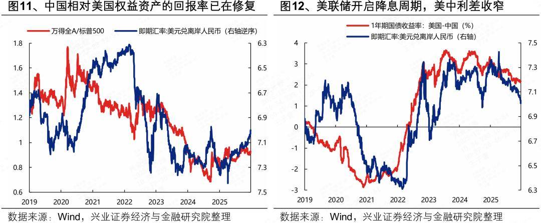 而今年以来,随着国内科技突破、出海竞争力提升、地缘破局引领的高质量发展转型趋于明朗,反内卷、抗通缩、提内需的迫切性与优先级提升,并传导到资产的预期回报上,此前压制人民币的两大底层逻辑已经扭转,并且反转逻辑在明年有望进一步强化,将构成本轮人民币主动升值的中长期支撑。