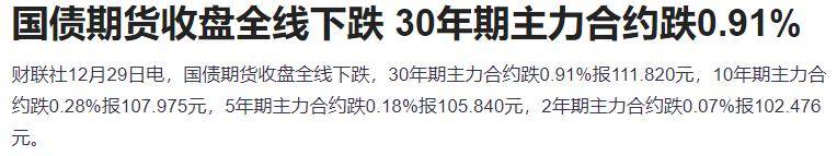 - 今天国债期货也是全线下跌,30年期主力合约跌0.91%报111.820元,10年期主力合约跌0.28%报107.975元,5年期主力合约跌0.18%报105.840元,2年期主力合约跌0.07%报102.476元。