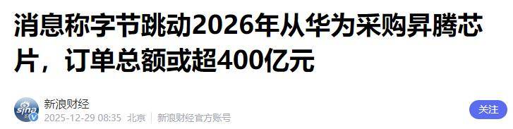 - 昨晚有媒体报道,字节2026年从华为采购的昇腾芯片订单总额或将超过400亿元,而在2025年这一数值近乎为零。其中,首批芯片即将开启交付,规模达百亿级,将成为国产算力发展的里程碑时刻。