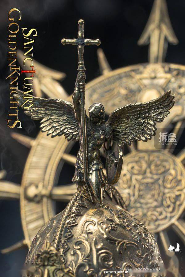 – 金色雕花全封闭头盔(顶部含金色天使装饰)