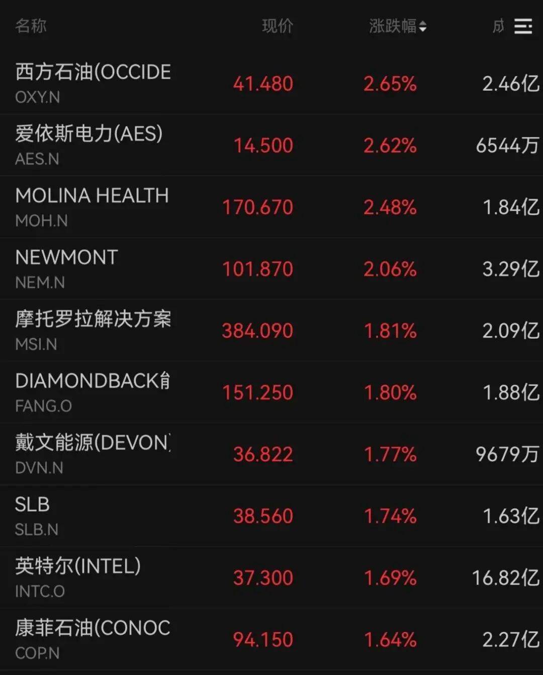 西方石油、DIAMONDBACK能源、戴文能源、康菲石油分别上涨2.65%、1.80%、1.77%、1.64%。