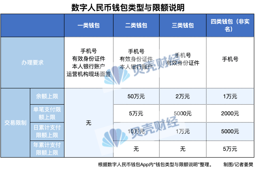 值得注意的是,数字人民币钱包分为四类钱包。其中,一类、二类、三类钱包为实名钱包,四类钱包为非实名钱包。因此四类钱包不属于各家银行计息的“实名钱包”范畴。交行在公告中明确,如客户开立的数字人民币钱包为四类个人钱包,则钱包内的余额不计付利息。