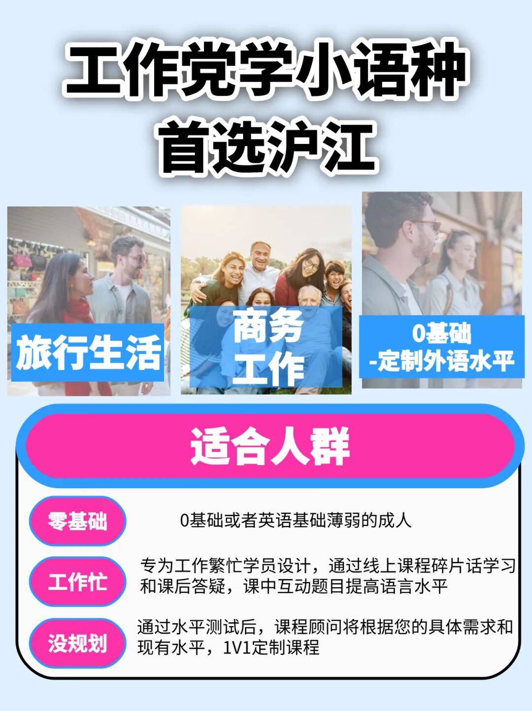 如果你已经有心仪的语言方向,或者想根据自己的职业、年龄、行业定制学习方案,hjeng10),我们可以为你1v1定制学习方案,帮你把这门语言,真正学成“有用的能力”。