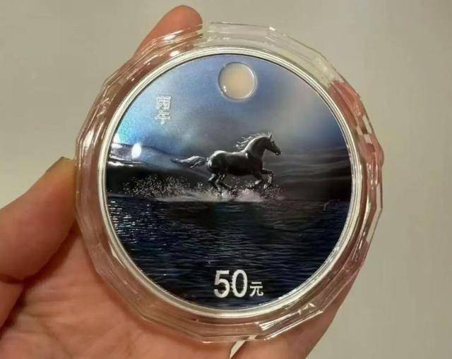 大家看那枚2026丙午马年的150克彩色银币——“月下奔马”。