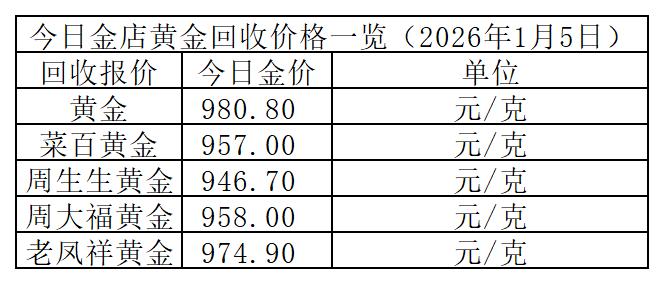今日黄金回收价格也有不同程度的涨幅,不同品牌回收价差也较大,以下为部分金店回收参考价: