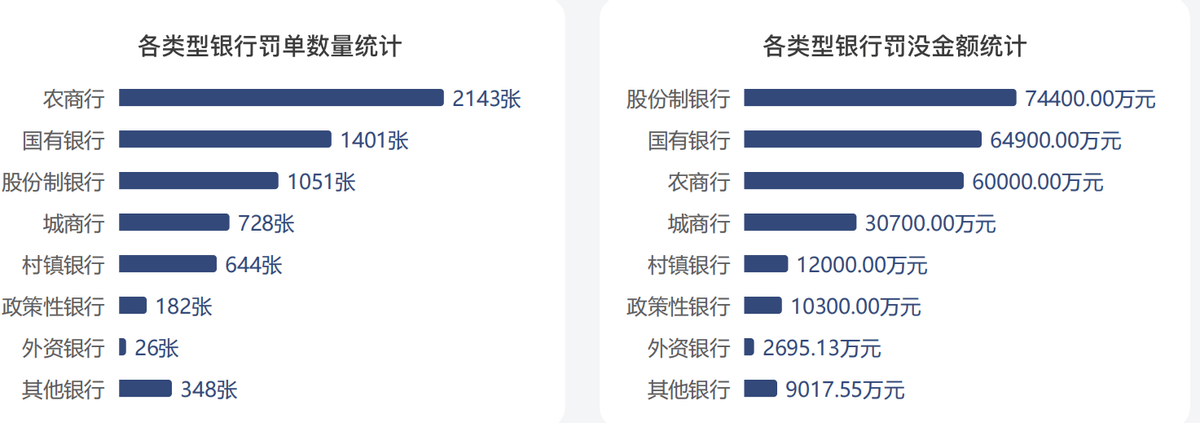 从罚单分布来看,不同类型银行的违规特点很鲜明。