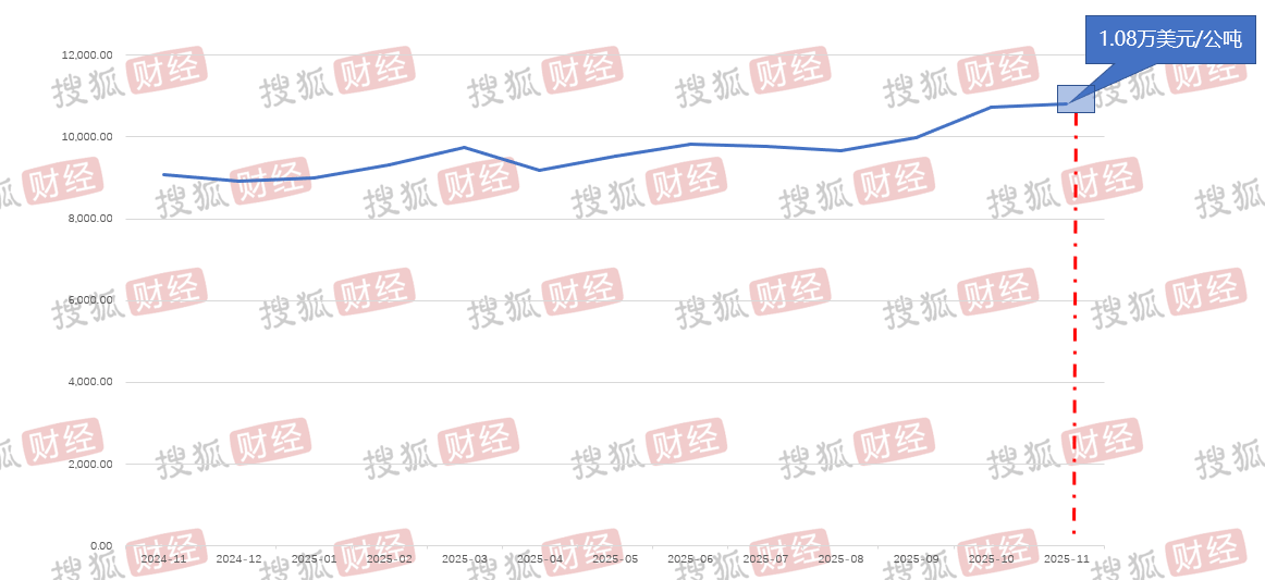 2025年以来,铜价从1月的8991.41美元/公吨增至11月1.08万美元/公吨,增幅达20.25%。
