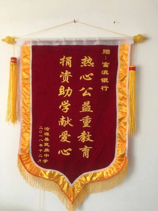 获得沧源县民族中学赠捐资助学锦旗