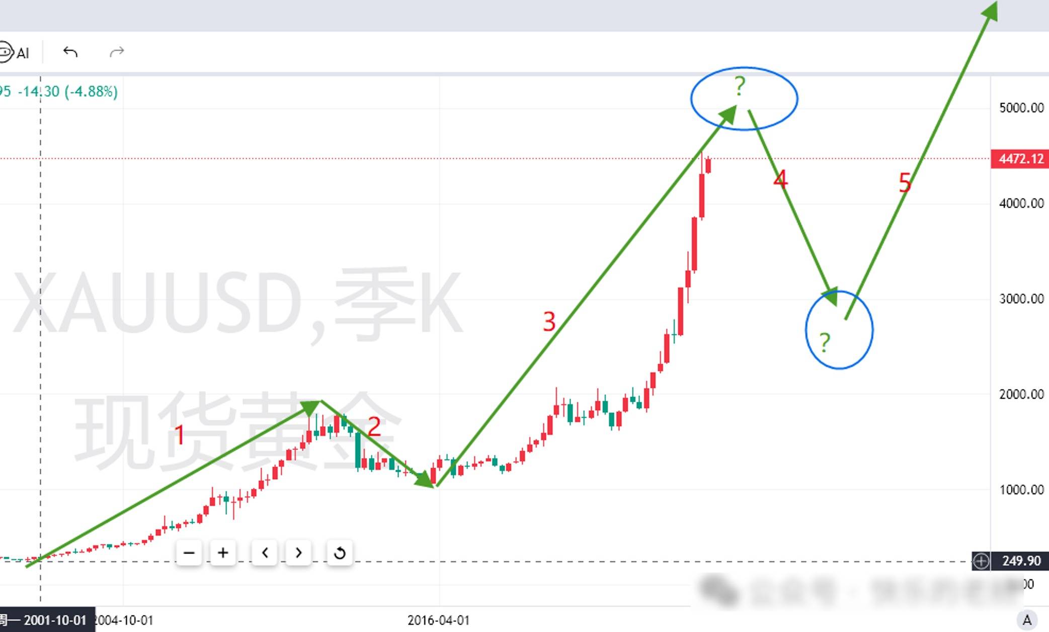 既然,2026年黄金继续维持牛市。那么,黄金可能的价格能到什么价位?我们大胆假设,小心求证。因为历史新高价位都属于盲区,只能现有的分析工具或者根据历史去预测分析;盲人摸象一样,价格预测对了纯属运气,错了仅供娱乐。
