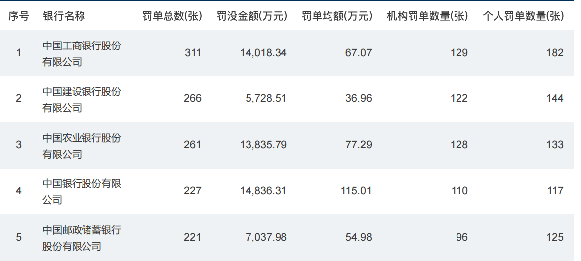 一级分行中,广东省分行、四川省分行、海南省分行、河北省分行等均收到罚单,其中广东省分行被罚合计176.54万元,河北省分行罚款金额达221 万元,海南省分行罚款187万元,四川省分行则被罚款160万元;