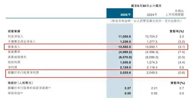 2025年中原银行陷入了明显的盈利能力危机,尤其是业绩呈现出“营收净利双降”的疲软态势。
