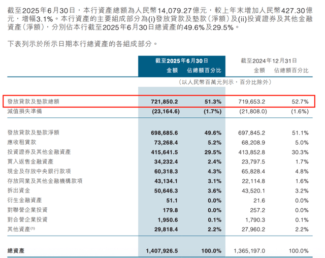 尤其值得关注的是,上半年贷款日均余额较去年同期减少26.63亿元,而存款日均余额达9236.04亿元,存贷比从80.33%降至75.77%,这意味着大量低成本存款资金未能有效转化为信贷资产,反而堆积在低效资产领域,直接拖累了整体盈利效率。