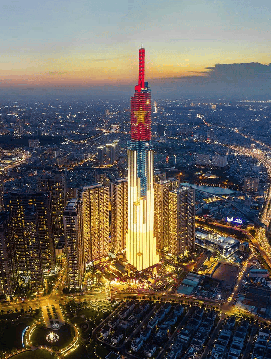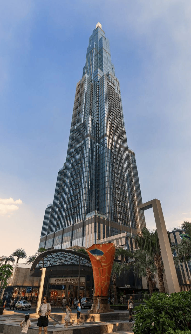 该大楼总建筑面积达241,000平方米,高461米,地上81层、地下3层,功能涵盖商业、住宅、酒店及观光。项目由越南最大私营企业Vingroup集团投资开发,耗资约14亿美元。