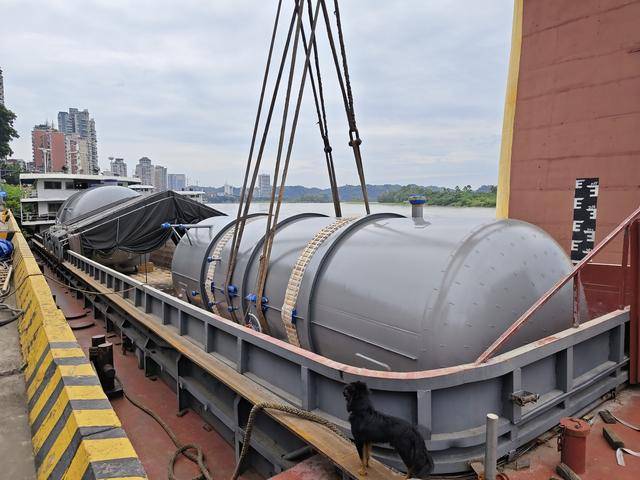 2025年7月运往俄罗斯远东地区的天然气加工设备,在乐山港大件码头装船