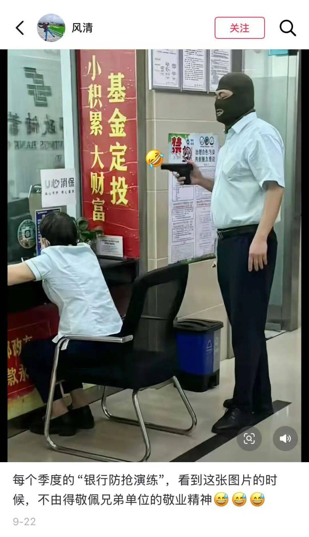 根据一位银行摄影大师介绍,演练必须真实,因为会抽查录像,摆拍和笑场都会被通报,建议戴好口罩,避免憋不住笑。