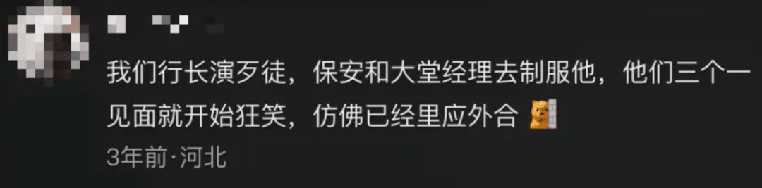 “他曾骂骂咧咧冲向演练现场的行长,也裸绞过两位客户经理,擅长自己给自己加戏,假装扔炸弹还用嘴配音,连续三年荣获网点优秀悍匪称号。”