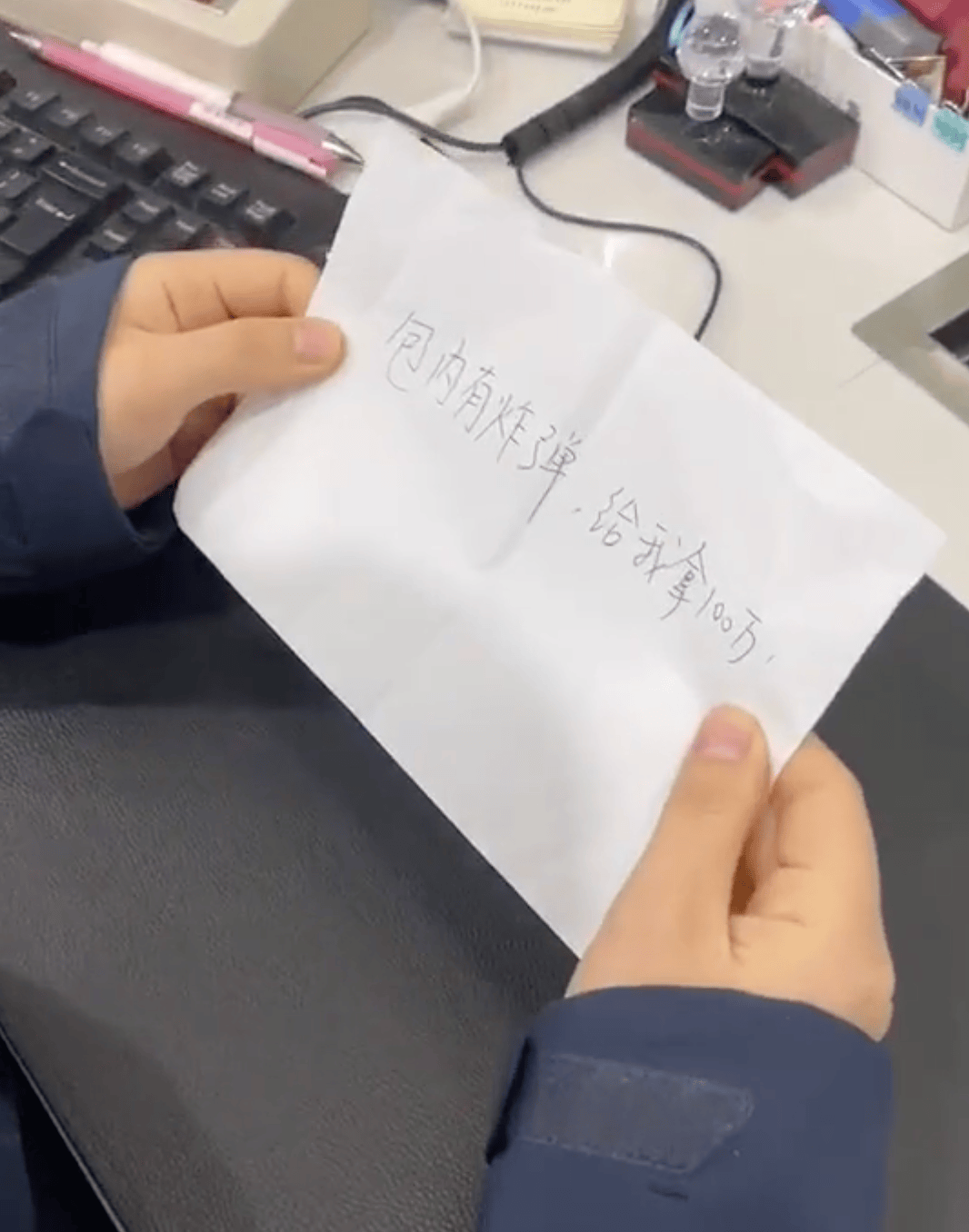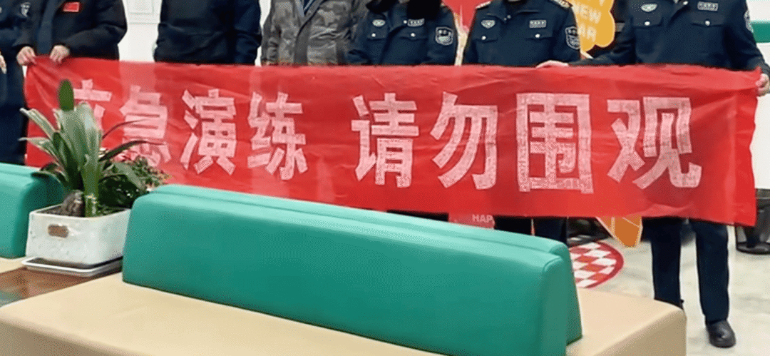 “我们刚演练完,我演人质,由于笑场,视频被监控中心驳回,只能重来。”