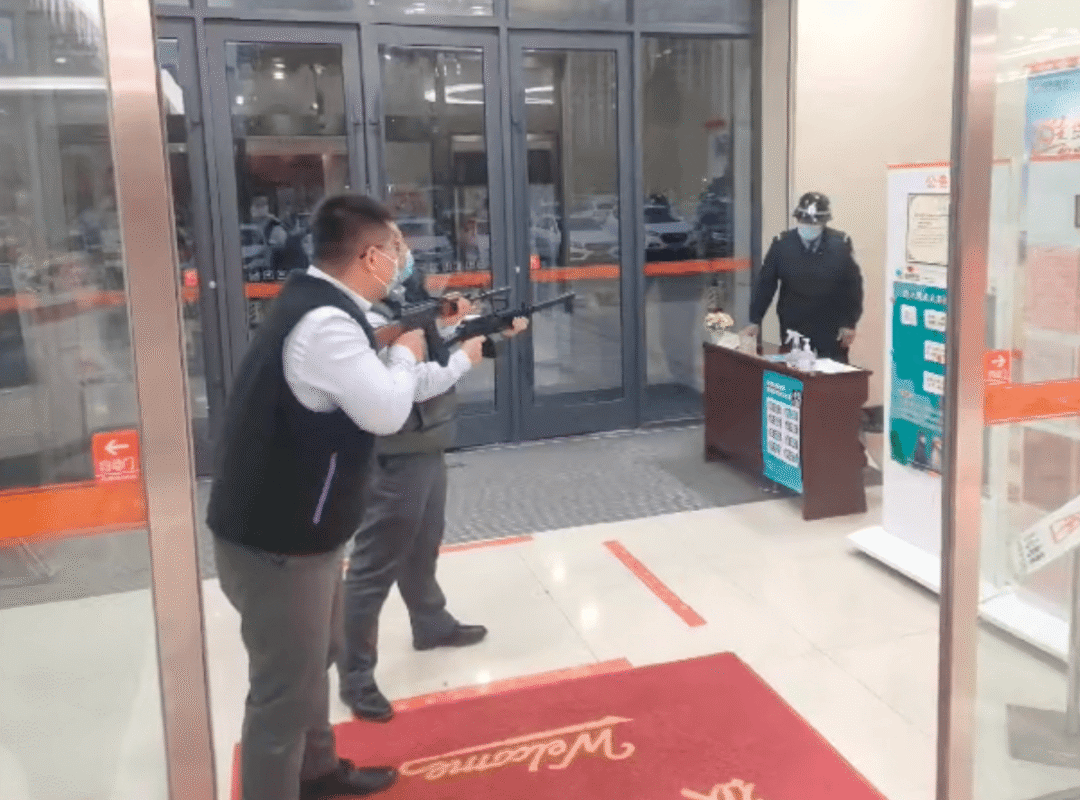 “直到一次防持枪抢劫的演练,门口有不知情的热心群众真报了警,导致网点主任被警察同志带走,现在我们都是抽签选角色。”