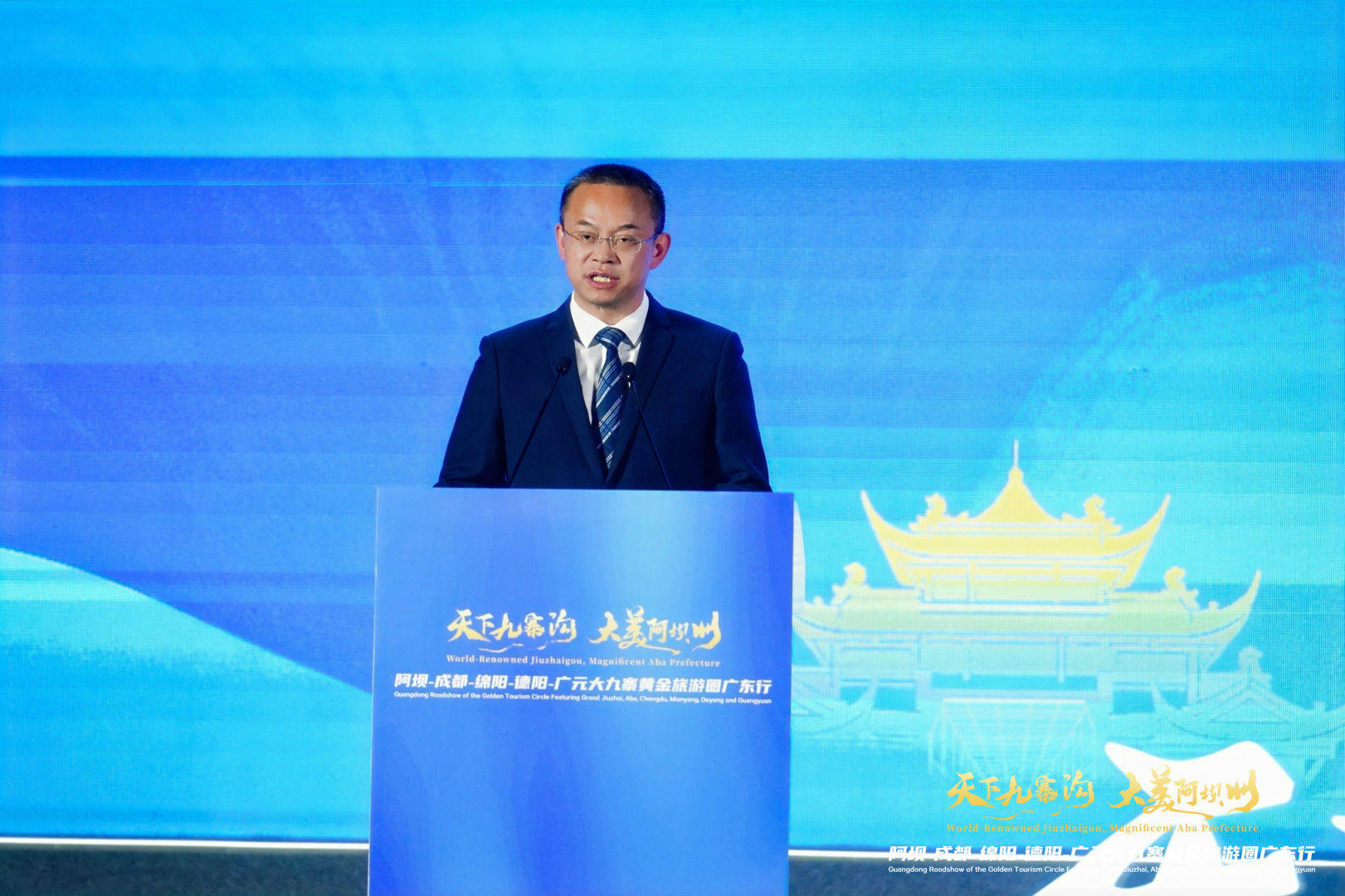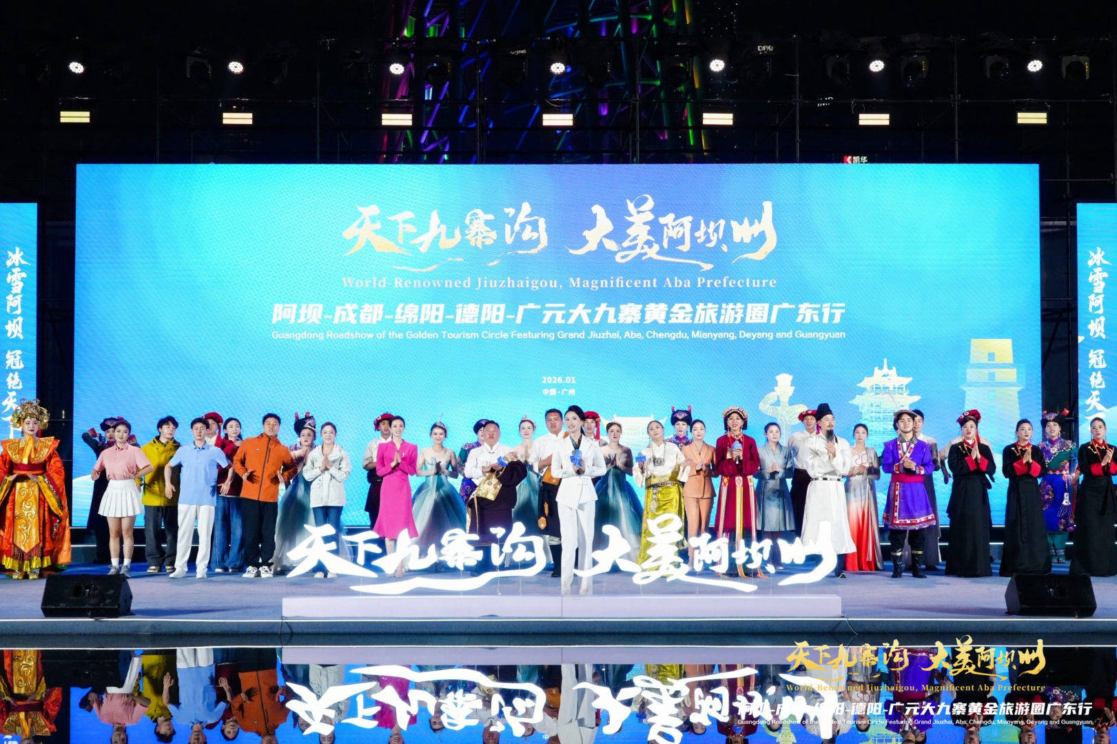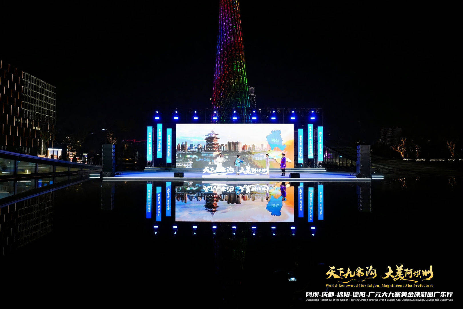 由阿坝藏族羌族自治州人民政府主办,阿坝州文化广播电视和旅游局、成都市文化广电旅游局、绵阳市文化广播电视和旅游局、德阳市文化广播电视和旅游局、广元市文化广播电视和旅游局承办的“天下九寨沟·大美阿坝州”阿坝-成都-绵阳-德阳-广元大九寨黄金旅游圈广东行活动在广州塔南广场举行。活动以“阿坝州点亮广州塔”为序,通过沉浸式文旅推介、主旨演讲、特色文艺表演等多元形式,向粤港澳大湾区游客发出“冬游川西北”的盛情邀约。
