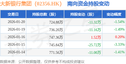 证券之星消息,1月20日南向资金减持11.32万股大新银行集团(02356.HK)。近5个交易日中,获南向资金减持的有4天,累计净减持57.68万股。近20个交易日中,获南向资金减持的有15天,累计净减持151.4万股。截至目前,南向资金持有大新银行集团(02356.HK)724.88万股,占公司已发行普通股的0.5%。