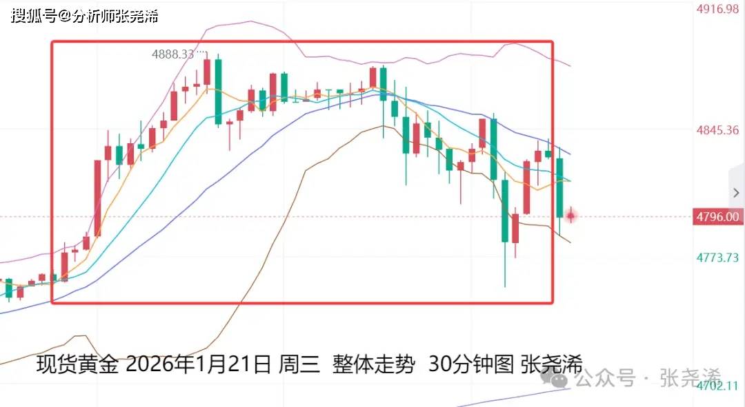 上交易日周三(1月21日):国际黄金日内继续强势拉升超百美元,但最终涨势有所收窄, 因特朗普透露格陵兰岛问题似乎迎来转机,原定于2月1日生效的关税将取消!并在达沃斯论坛上称:不会动用武力来获取格陵兰岛。多头动力减弱,避险情绪缓解,周尾有调整的风险,但调整回撤触及5日或10日均线支撑位置,也是再度入场看涨的机会。
