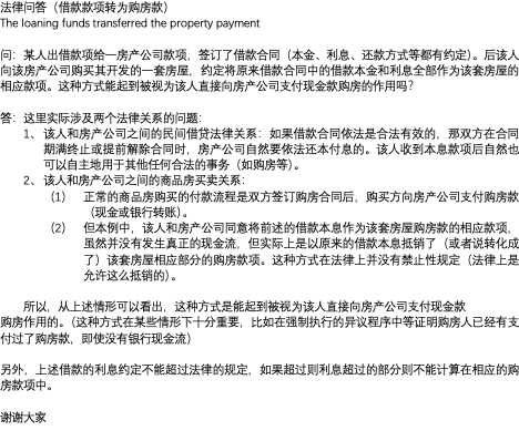 法律问答(借款款项转为购房款) The loaning funds transferred the property payment