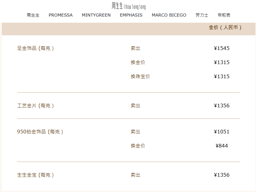 周生生官网发布数据显示,足金饰品报1545元/克,较1月22日上涨超50元/克 。
