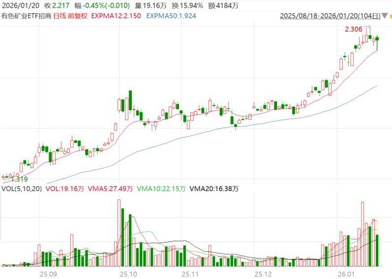 有色矿业ETF招商(159690)跟踪有色金属矿业指数聚焦资源品上游,黄金、铜、铝等关键金属权重占比近6成。截至1月19日,有色矿业ETF招商(159690)跟踪的中证有色金属矿业指数近一年涨幅达119.65%,近十年累计涨幅206.51%,领跑主流有色指数。