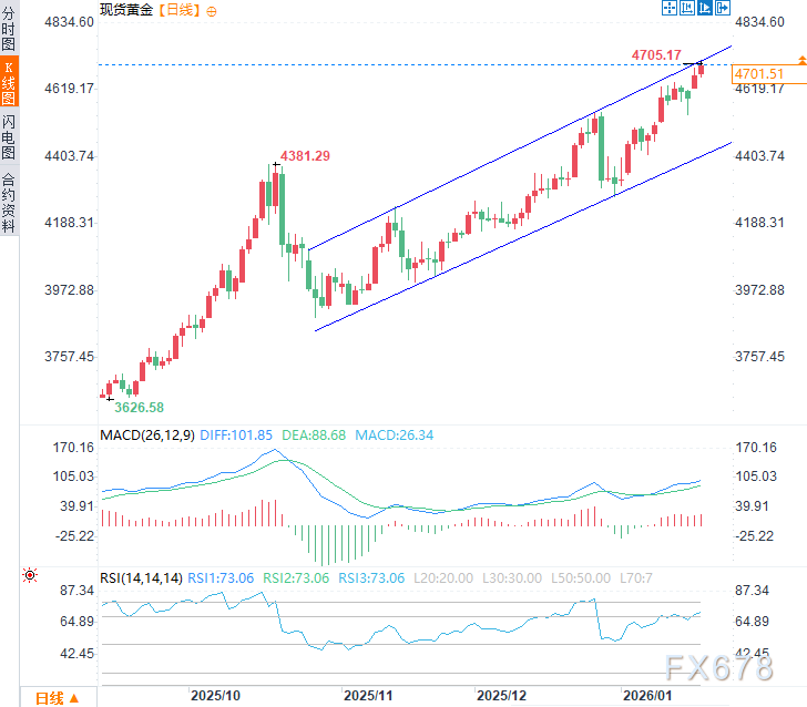 (现货黄金日线图,来源:易汇通)北京时间13:43,现货黄金现报4703.31美元/盎司。