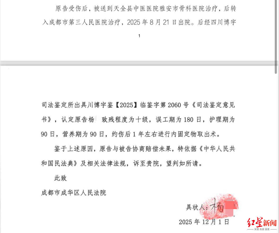 后经司法鉴定,杨先生的伤致残程度为十级,误工期、护理期、营养期将近一年,一年左右还要手术,还有诸多费用需支出。